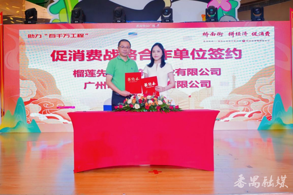 活动精准把握中秋消费旺季时间节点,巧妙以广受欢迎的榴莲产品为特色载体,着力构建“品质消费+场景体验”深度融合的新型促消费模式。在活动现场,通过桥南街道办事处的积极促成,“榴莲先生”品牌方与辖区5家重点企业成功签订了《促消费战略合作协议》,建立起从“产地直供”到“终端展销”的高效供应链体系,确保品质与实惠。